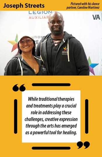 “After working with the lead director, Maria Espinoza, training with her and doing private lessons, she mentioned how my military bearing, and the fact that I was on the military drill team, was going to help me learn more as a strong lead in dance and so we're tried to cultivate that military bearing with the creativity of salsa and bachata,” Street admits.
