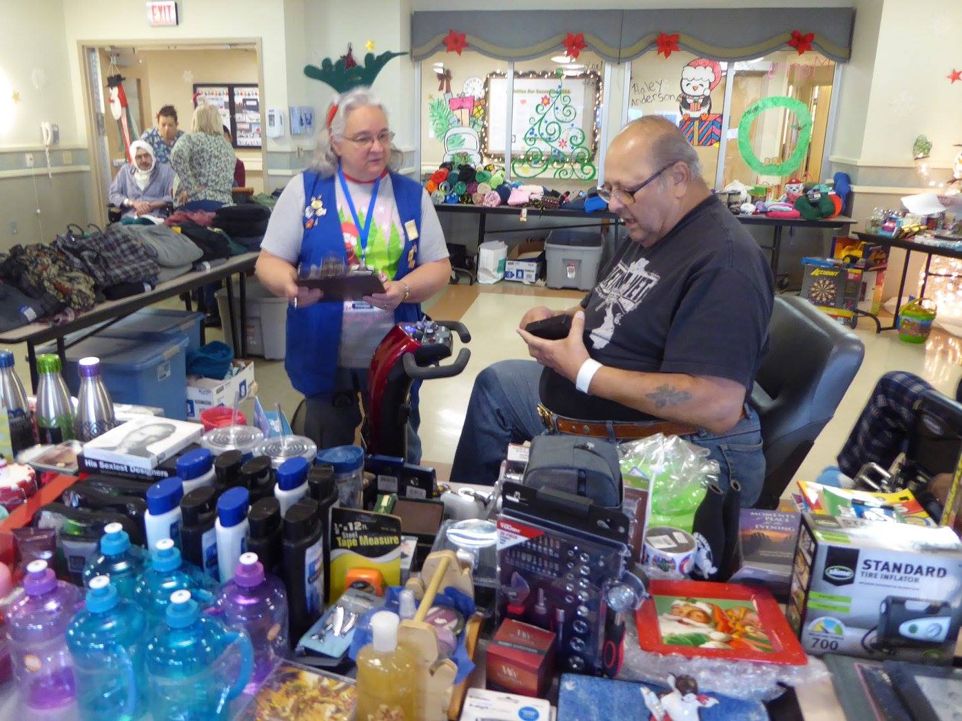 No one is left out. Volunteers make sure that veterans confined to their rooms are able to participate and offer to shop for them. Those who may not see their loved ones over the holidays can ship their gifts at no cost to them. Holiday cheer, smiles, and laughter fill the facility.